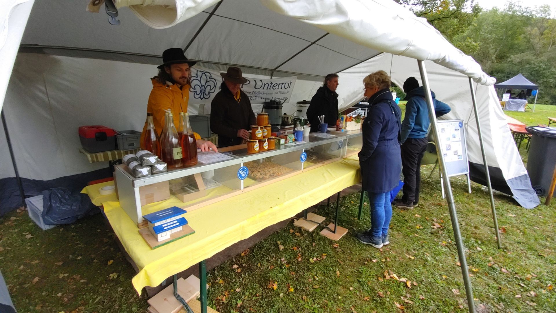 Auch dieses Jahr konnten wir von unseren Bienenvölkern am Pfadihaus auf dem Kieselberg Honig ernten. An zwei Terminen, 27.7 und 24.8. wurde geschleudert. Doch ohne die vielen Helfereinnen und Helfer wäre es nicht so zügig voran gegangen. Jeweils einen halben Tag wurden Honigwaben entdeckelt und in der Honigschleuder geschleudert. Jeder freute sich über ein Glas Honig - 100% natürlich und lecker!